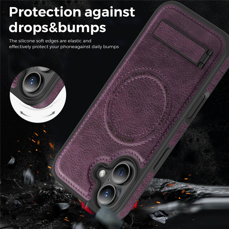 iPhone 17 Mobilskal MagSafe Kickstand Läder - Mörklila