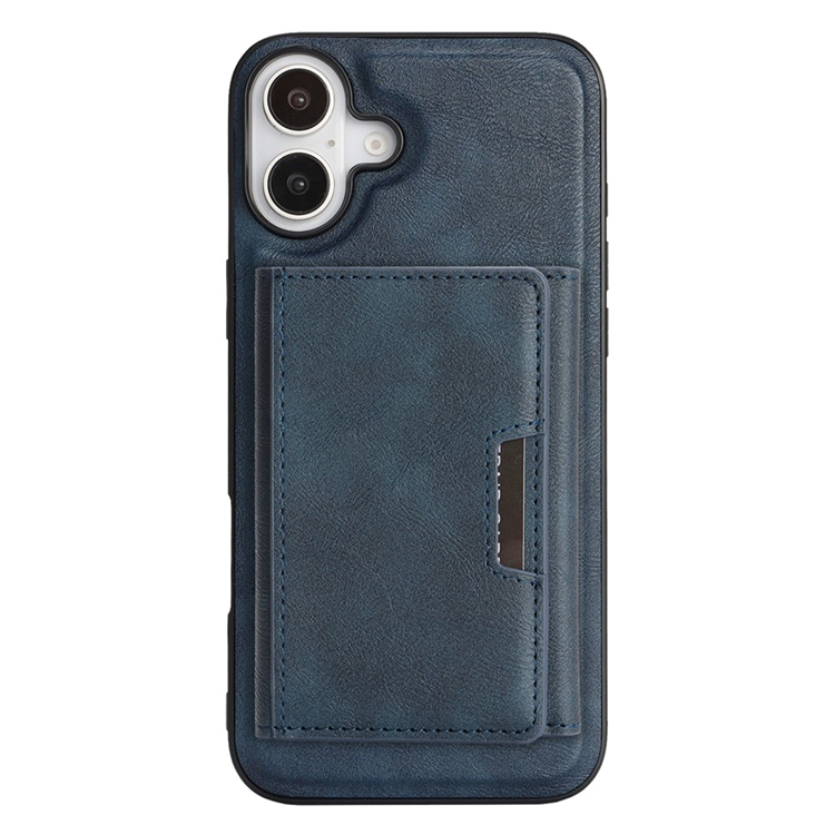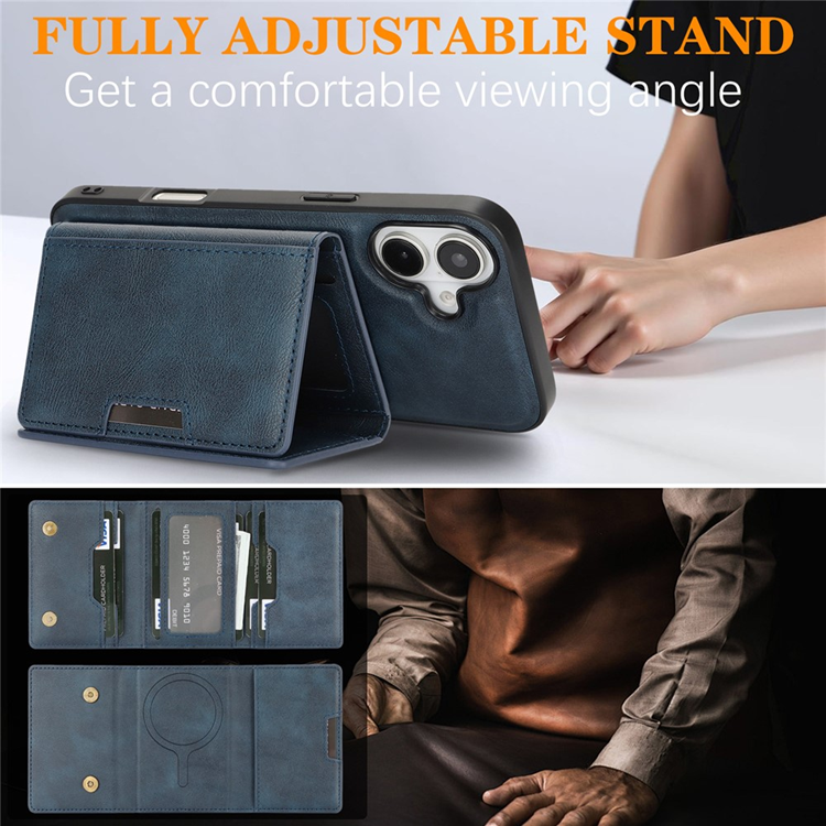 iPhone 17 Mobilskal MagSafe Kickstand Tri-fold Korthållare PU Läder Coated TPU - Blå