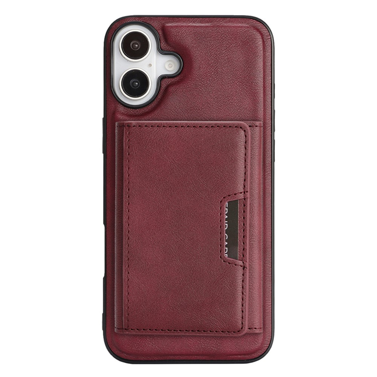 iPhone 17 Mobilskal MagSafe Kickstand Tri-fold Korthållare PU Läder Coated TPU - Röd