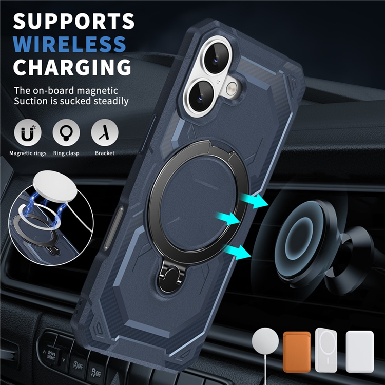 Det starka inbyggda magnetiska ringen (1500 g magnetkraft) ger säker och snabb anslutning till MagSafe-kompatibla laddare. Detta gör trådlös laddning stabilare och mer effektiv, även när du rör dig runt hemma eller på jobbet. -