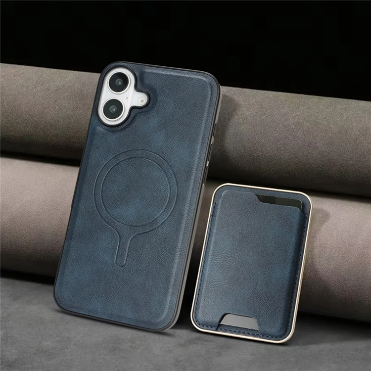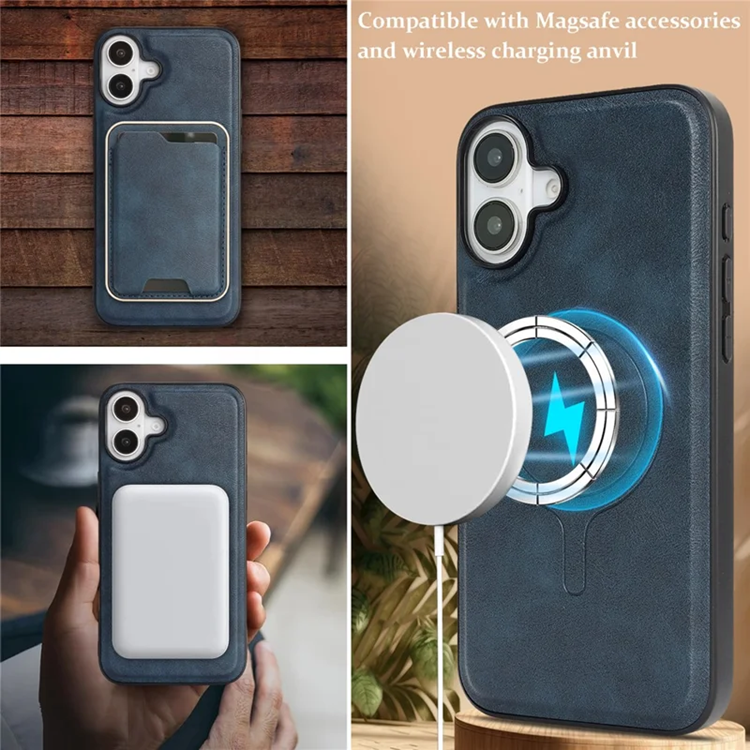 iPhone 17 Mobilskal Magsafe Ultra Thin korthållare PU Läder TPU - Blå