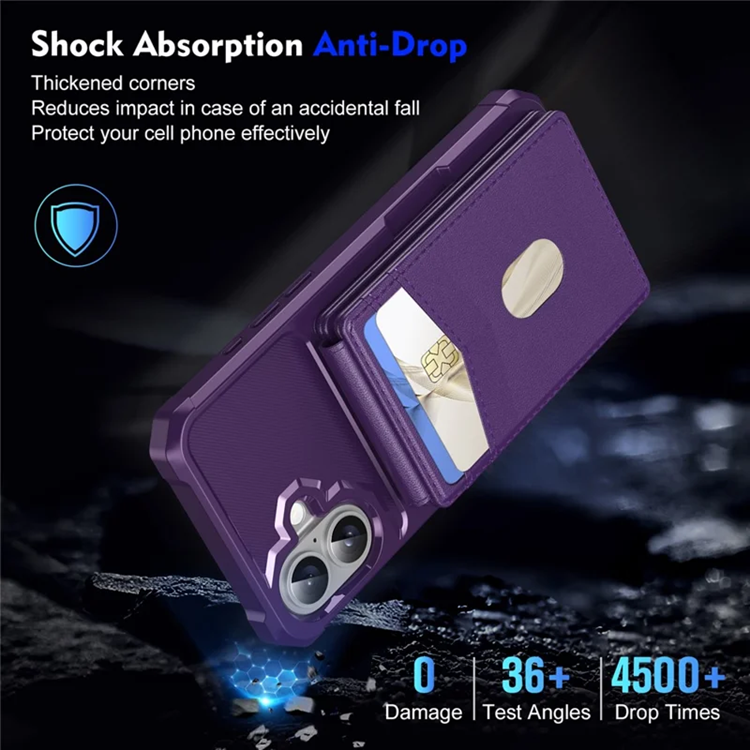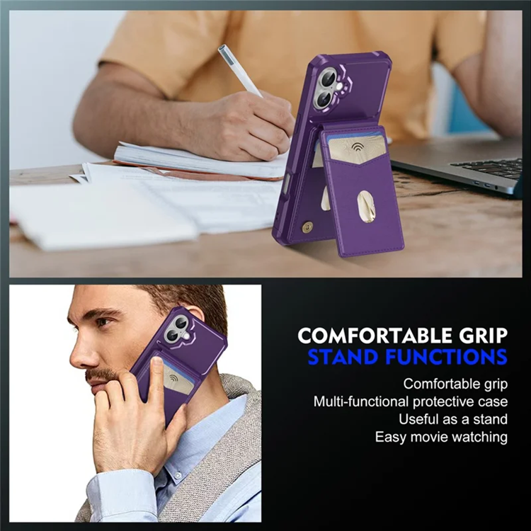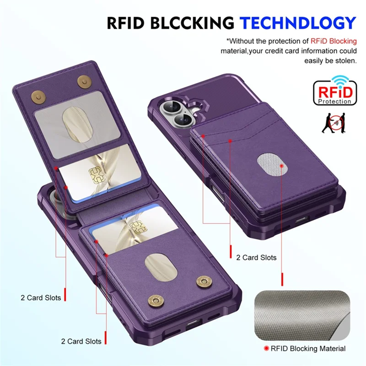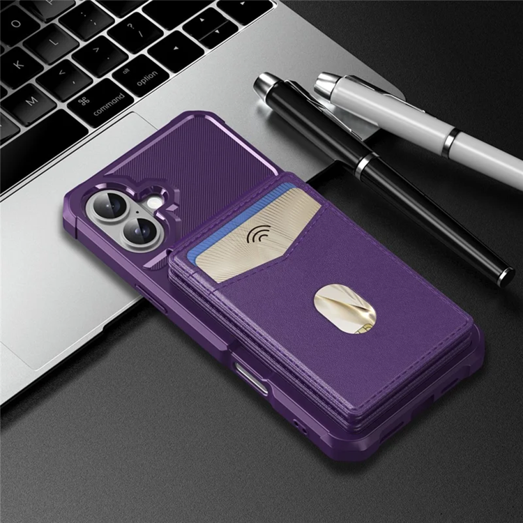 iPhone 17 Mobilskal Magsafe Korthållare Detachable Kickstand Läder + TPU - Lila
