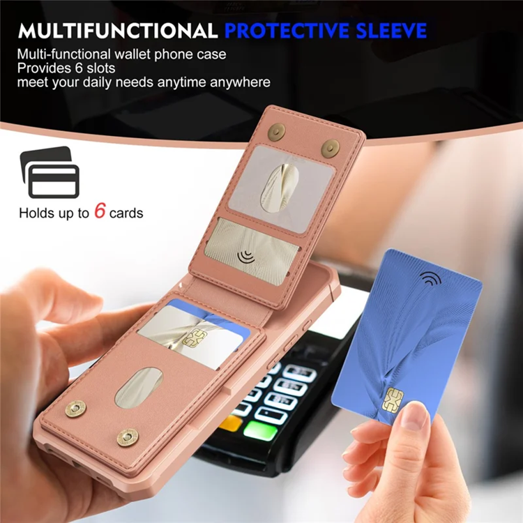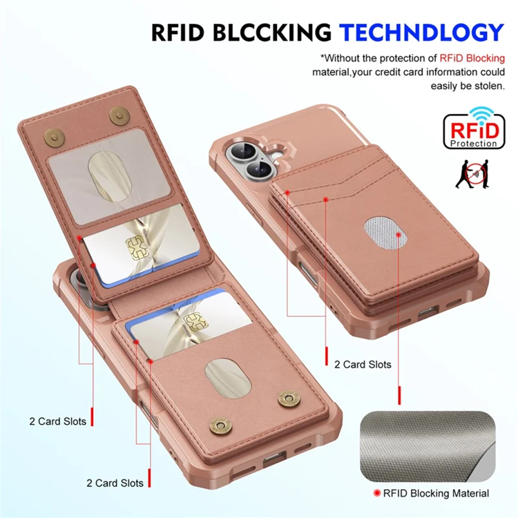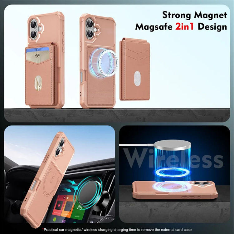 iPhone 17 Mobilskal Magsafe Korthållare Detachable Kickstand Läder + TPU - Roséguld