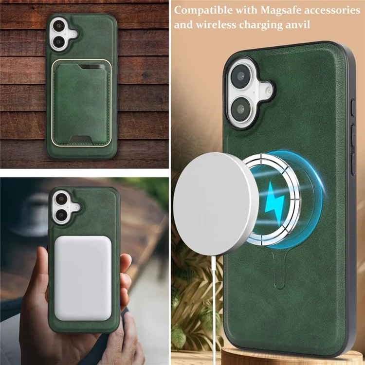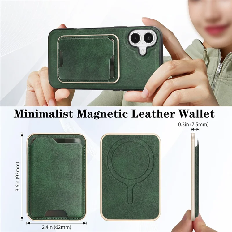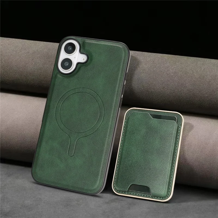iPhone 17 Mobilskal Magsafe Ultra Thin korthållare PU Läder TPU - Grön
