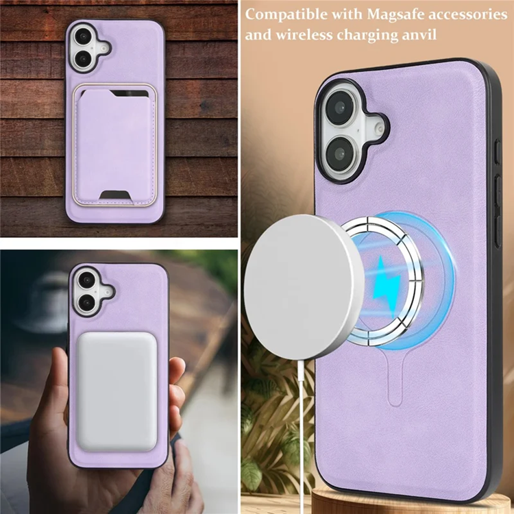 iPhone 17 Mobilskal Magsafe Ultra Thin korthållare PU Läder TPU - Lila