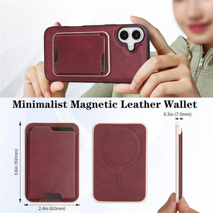 iPhone 17 Mobilskal Magsafe Ultra Thin korthållare PU Läder TPU - Röd