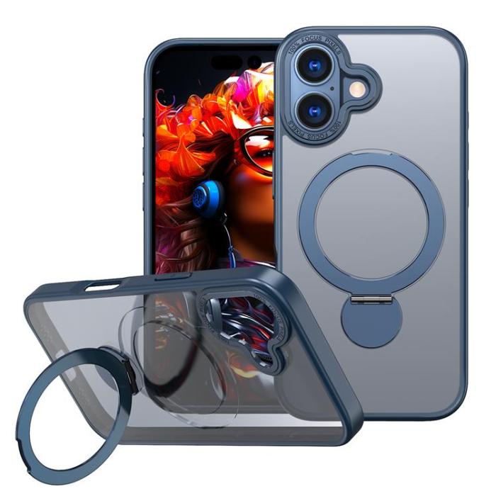 iPhone 17 Mobilskal MagSafe Rotating Kickstand Skin-touch TPU + PC - Blå