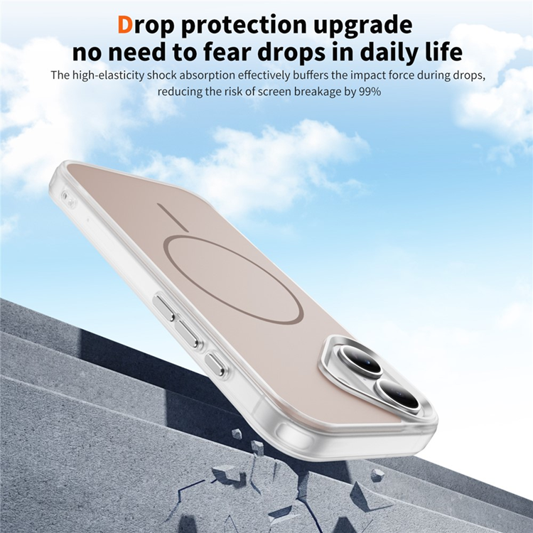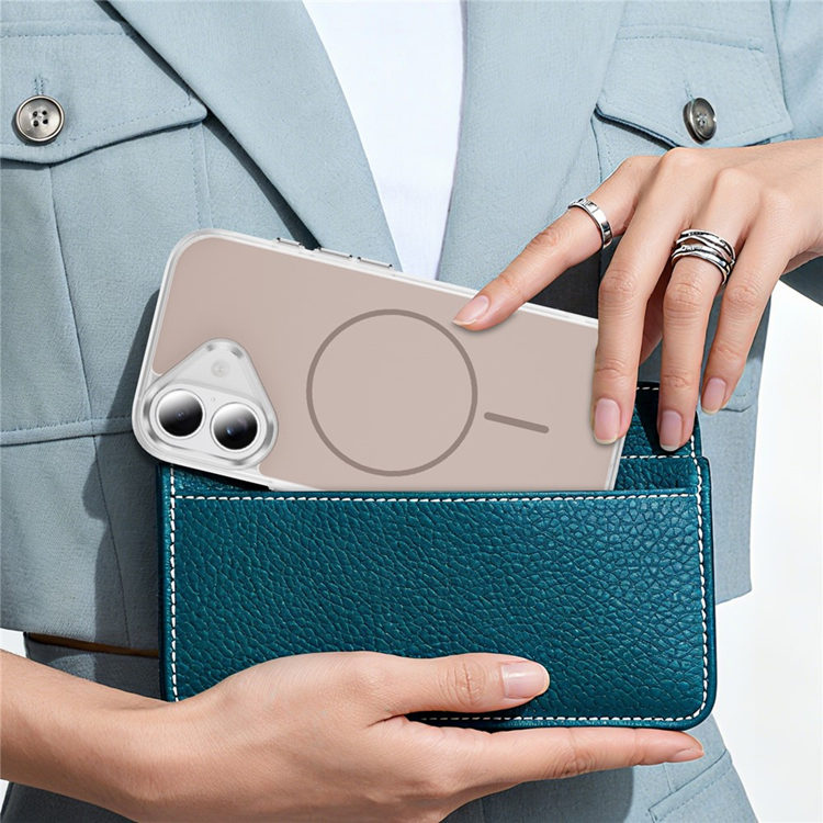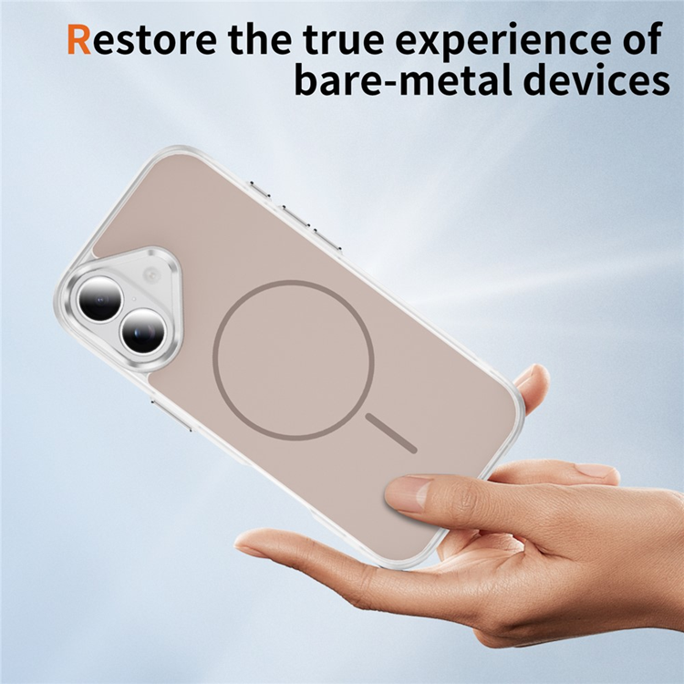 Det kraftfulla magnetiska N52-ringmagneten gör skalet helt MagSafe-kompatibelt, så du får snabb och säker trådlös laddning utan att behöva ta av något. Den frostade ytan med ice-feel-partiklar ger en sval, matt känsla som inte bara känns premium – den minskar även fingeravtryck och fettmärken. Med förhöjda kanter runt kamera och skärm får du dessutom ett omslutande skydd som är redo för vardagens alla risker.