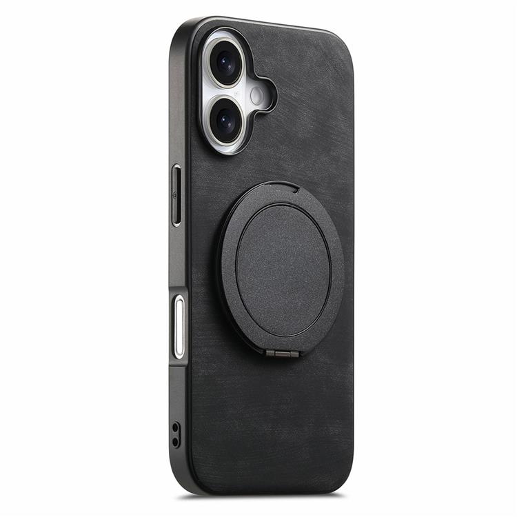 iPhone 17 Mobilskal Rotating Kickstand Retro Läder - Svart