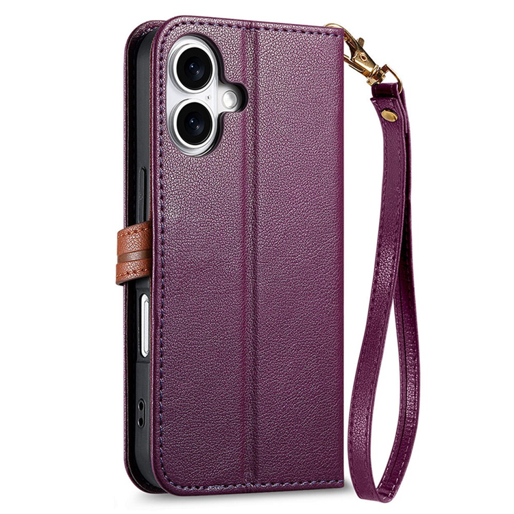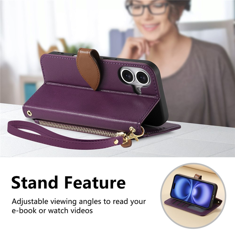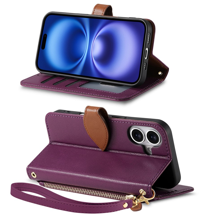 iPhone 17 Plånboksfodral med Handrem Leaf Shape Magnetiskt Spänne Läder - Lila