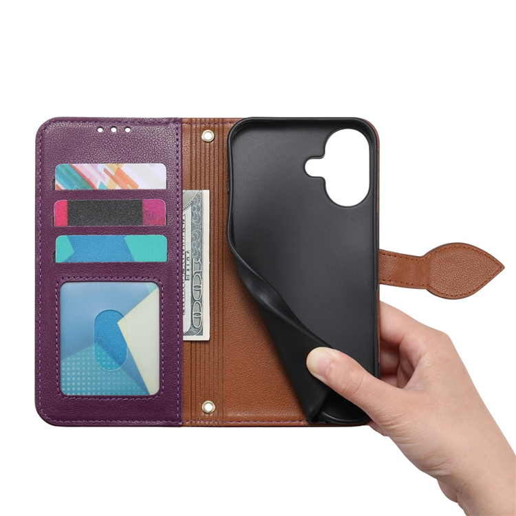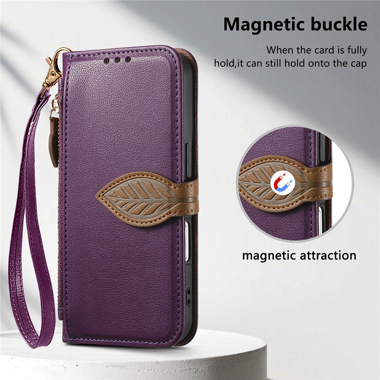 IPhone 17 Plånboksfodral Leaf Magnetiskt Spänne Konstläder - Lila (Lila)