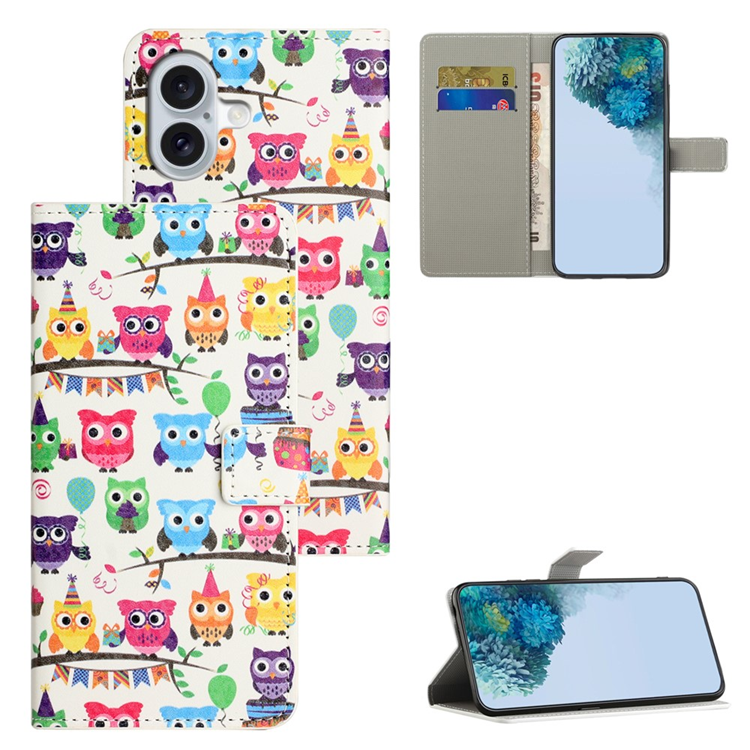 iPhone 17 Plånboksfodral Pattern Print Läder - Ugglor klistermärke
