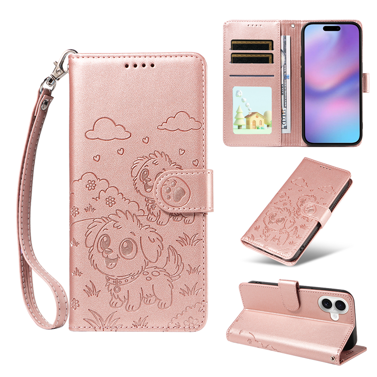iPhone 17 Plånboksfodral RFID med handledsrem Imprinted Dog Pattern PU läder - Rosa