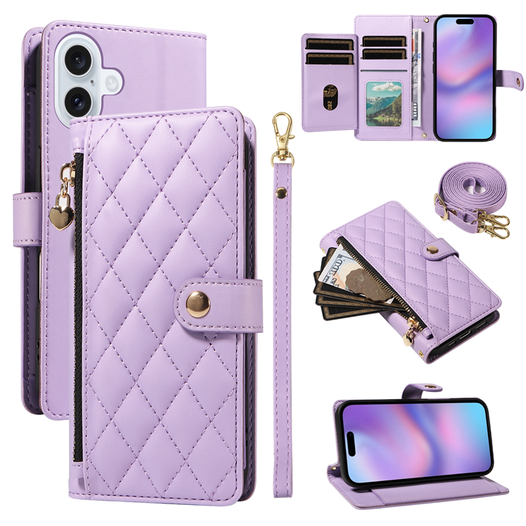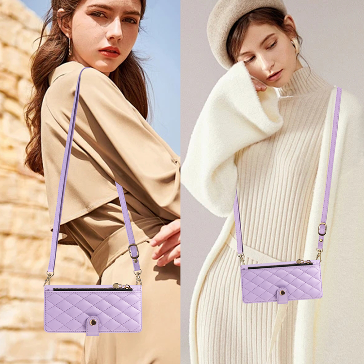 iPhone 17 Plånboksfodral med rem Rhombus Läder - Lila