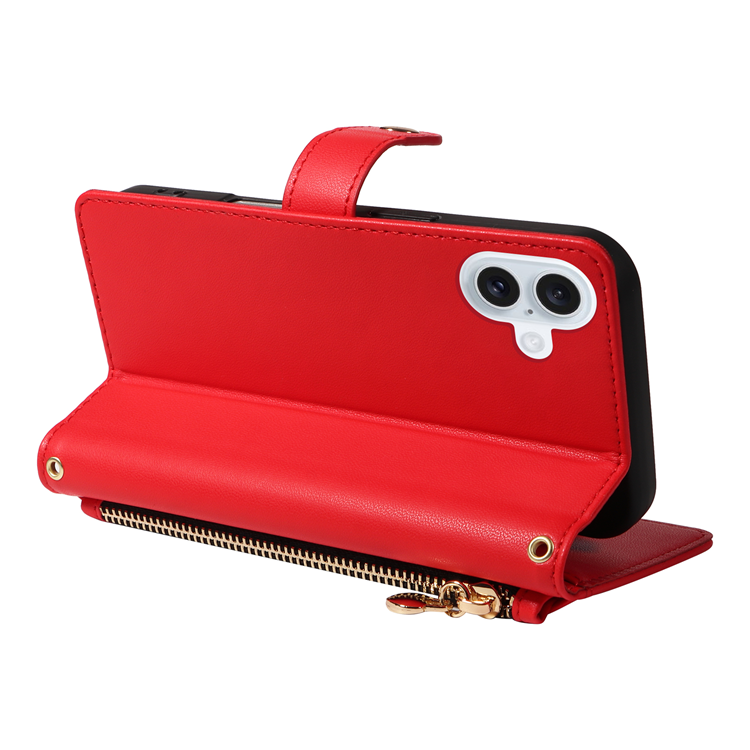 iPhone 17 Plånboksfodral med rem Rhombus Läder - Röd