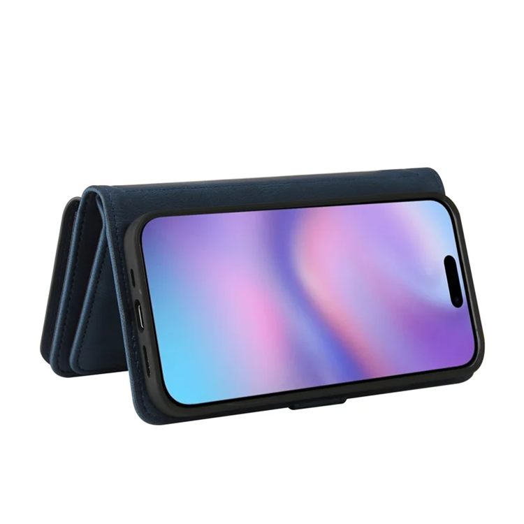 IPhone 17 Konstläder Plånboksfodral Zipper Rem (Blå)