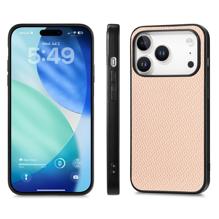 iPhone 17 Pro Max Mobilskal Carbon Fiber Texture PU Läder - Aprikos
