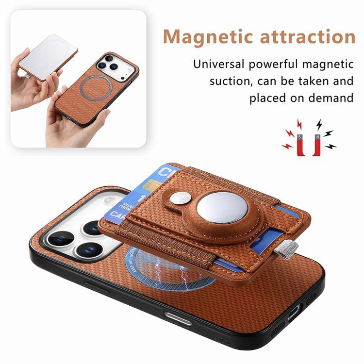 iPhone 17 Pro Max Mobilskal AirTag Detachable korthållare Läder + TPU + PC - Brun