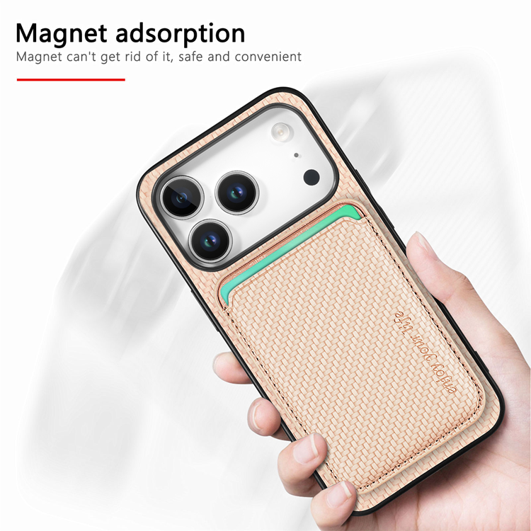 Ge din iPhone 17 Pro Max ett mobilskal som kombinerar premiumdesign, smart funktionalitet och pålitligt skydd. Skalet är tillverkat i en mix av PC, TPU och PU-läder med en sofistikerad kolfibertextur som ger ett säkert grepp och en elegant finish. Resultatet är en modern look som känns lika exklusiv som praktisk.