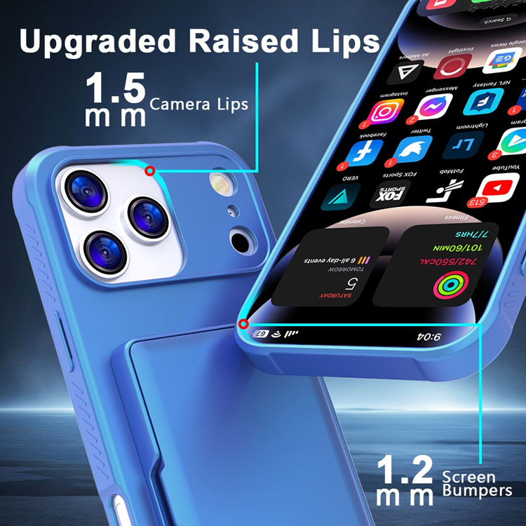 iPhone 17 Pro Max Mobilskal Korthållare Mirror TPU + PC Kickstand - Marinblå