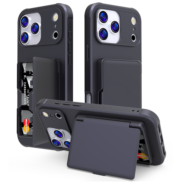 iPhone 17 Pro Max Mobilskal Korthållare Mirror TPU + PC Kickstand - Svart
