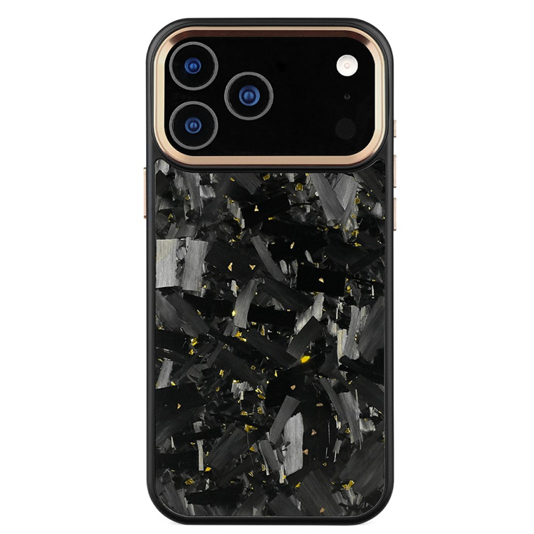 iPhone 17 Pro Max Mobilskal MagSafe Aramid Fiber Large Texture med Metall Lins Ram - Guld