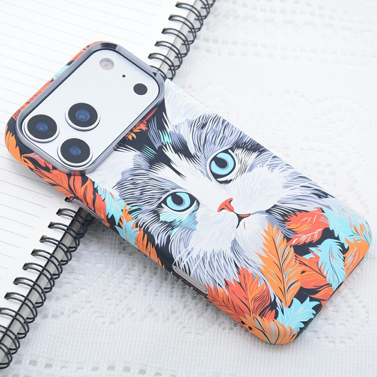 iPhone 17 Pro Max Mobilskal MagSafe Carbon Fiber Texture Water Transfer PC - Blåögd Katt
