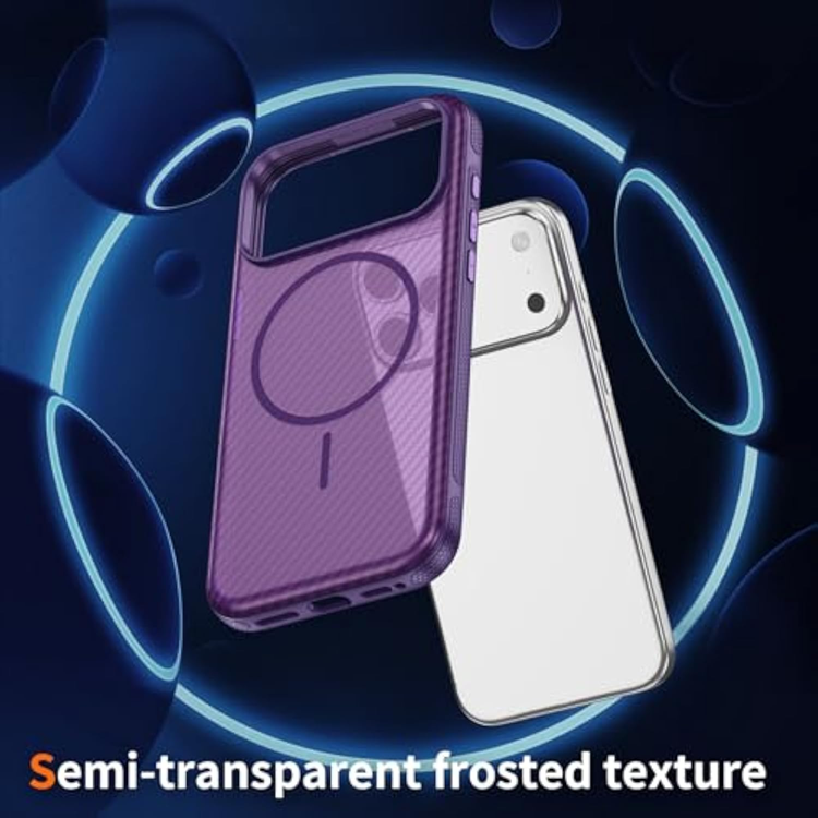 iPhone 17 Pro Max Mobilskal MagSafe Carbon Fiber Texture PC + TPU Anti-Slip - Lila