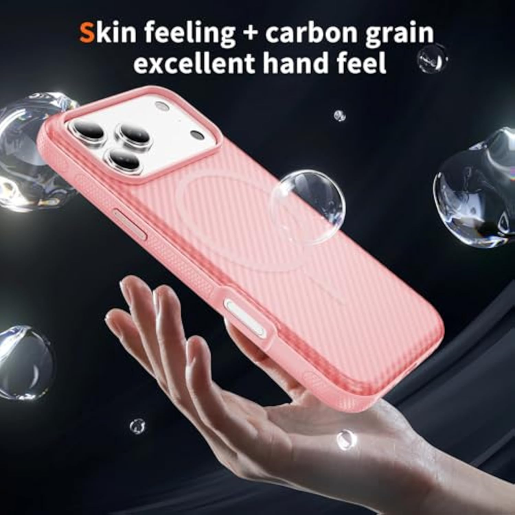 iPhone 17 Pro Max Mobilskal MagSafe Carbon Fiber Texture PC + TPU Anti-Slip - Rosa
