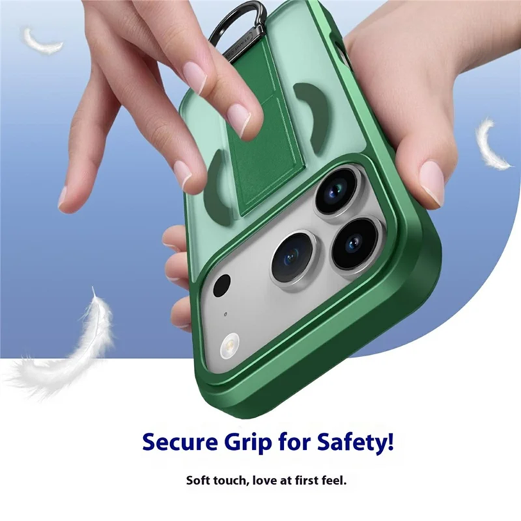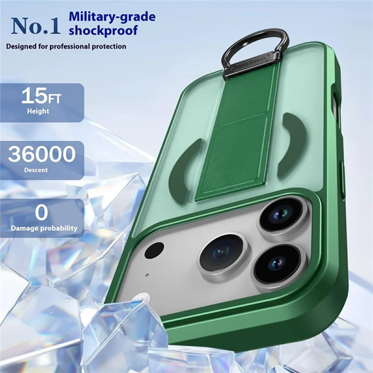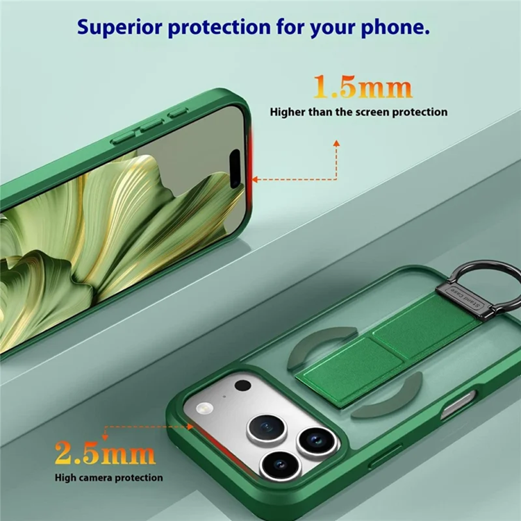 iPhone 17 Pro Max Mobilskal Magsafe D-Ring Kickstand med härdat glasskärmfilm - Grön