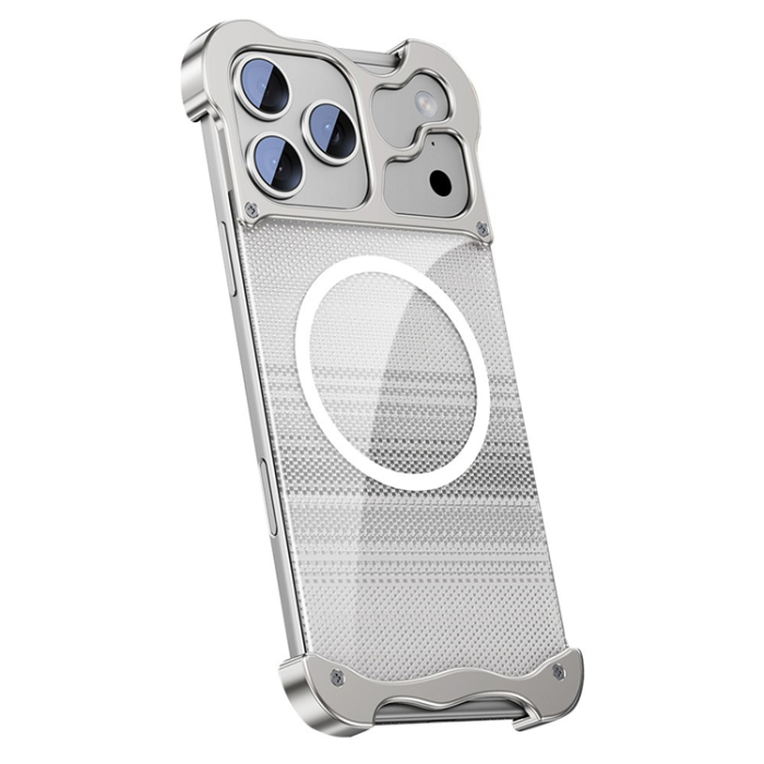 iPhone 17 Pro Max Mobilskal Magsafe Frameless Kevlar Pattern Gilded Aluminum Alloy Metal PC - Silver