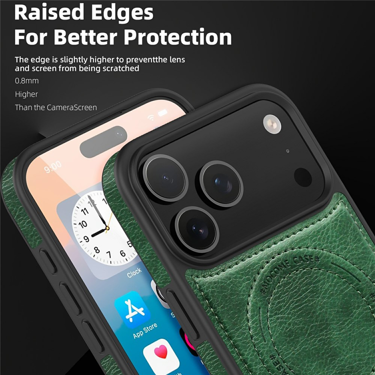 iPhone 17 Pro Max Mobilskal MagSafe Kickstand Läder - Svartgrön