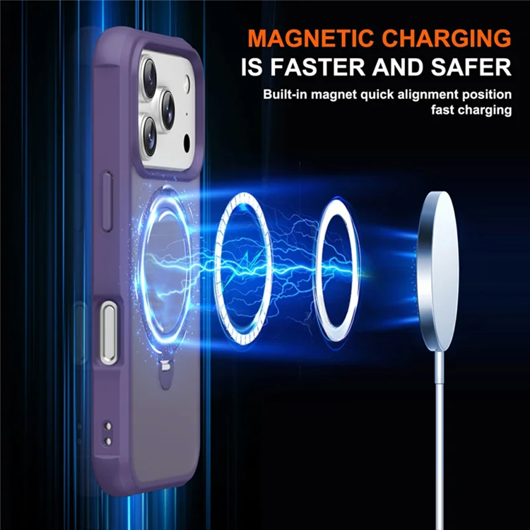 iPhone 17 Pro Max Mobilskal MagSafe Kickstand TPU + PC med Linsskydd - Lila