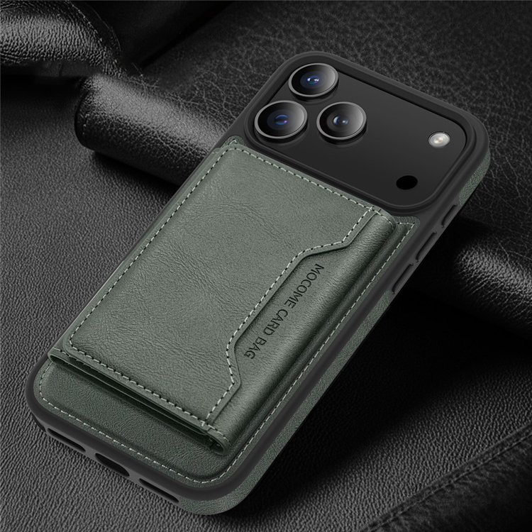 iPhone 17 Pro Max Mobilskal MagSafe med Detachable Korthållare Läder - Svartgrön