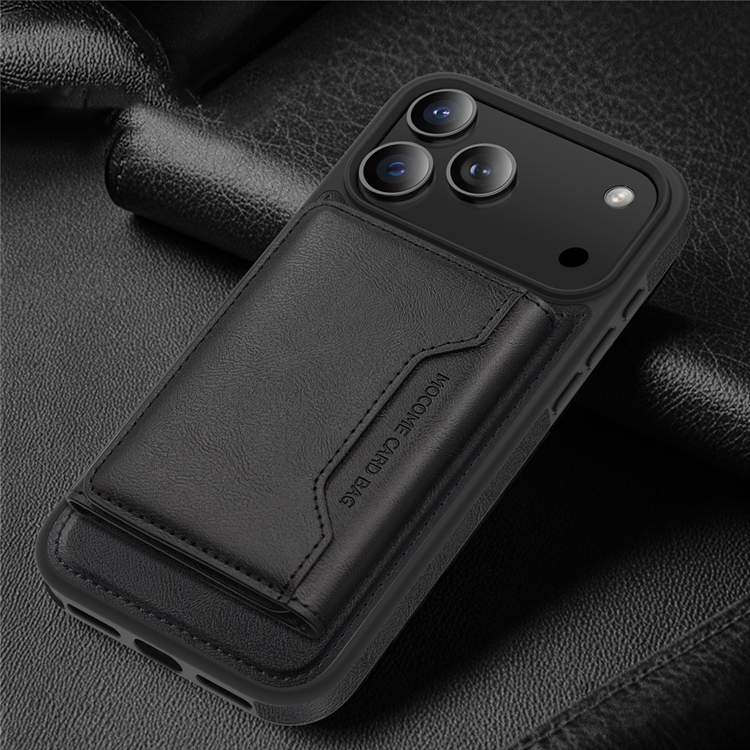 iPhone 17 Pro Max Mobilskal MagSafe med Detachable Korthållare Läder - Svart