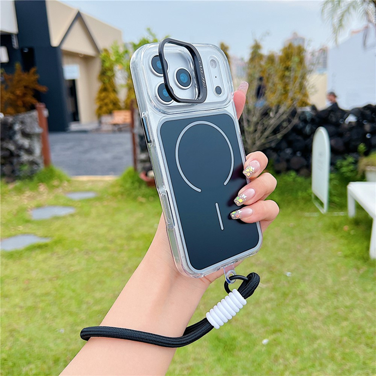 iPhone 17 Pro Max Mobilskal MagSafe med Matchande Handrem Lens Kickstand TPU Acrylic - Svart