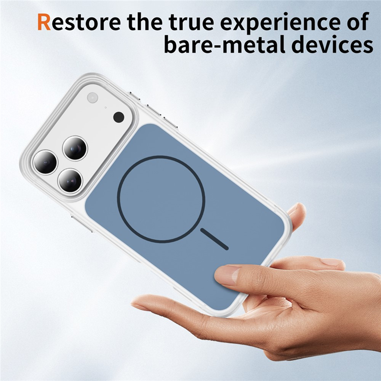 Det kraftfulla magnetiska N52-ringmagneten gör skalet helt MagSafe-kompatibelt, så du får snabb och säker trådlös laddning utan att behöva ta av något. Den frostade ytan med ice-feel-partiklar ger en sval, matt känsla som inte bara känns premium – den minskar även fingeravtryck och fettmärken. Med förhöjda kanter runt kamera och skärm får du dessutom ett omslutande skydd som är redo för vardagens alla risker.