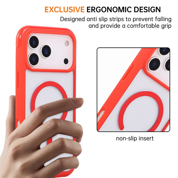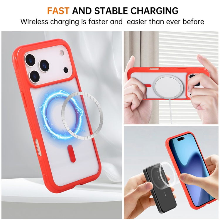 iPhone 17 Pro Max Mobilskal MagSafe TPU+PC Transparent - Röd