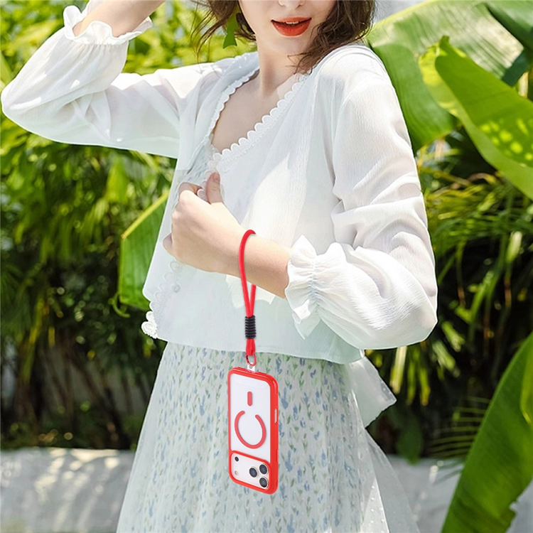 Ge din iPhone 17 Pro Max ett skal som kombinerar stil, funktion och säkerhet med detta transparenta mobilskal med handledsrem. Tillverkat i en tålig blandning av TPU och PC ger det både flexibilitet och stötdämpning, samtidigt som den klara baksidan visar upp mobilens eleganta originaldesign. De färgglada, halkfria kanterna ger en trendig touch och ett stadigt grepp, vilket gör att mobilen känns både snygg och säker i handen.