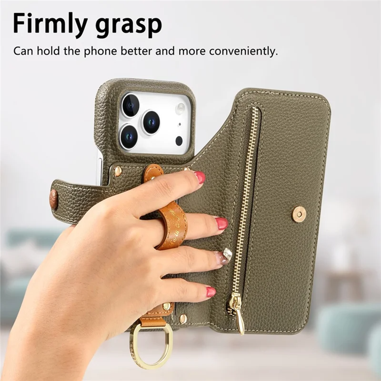 Handla denna produkt iPhone 17 Pro Max Konstläder Plånboksfodral RFID-Skydd Zipper - Grön