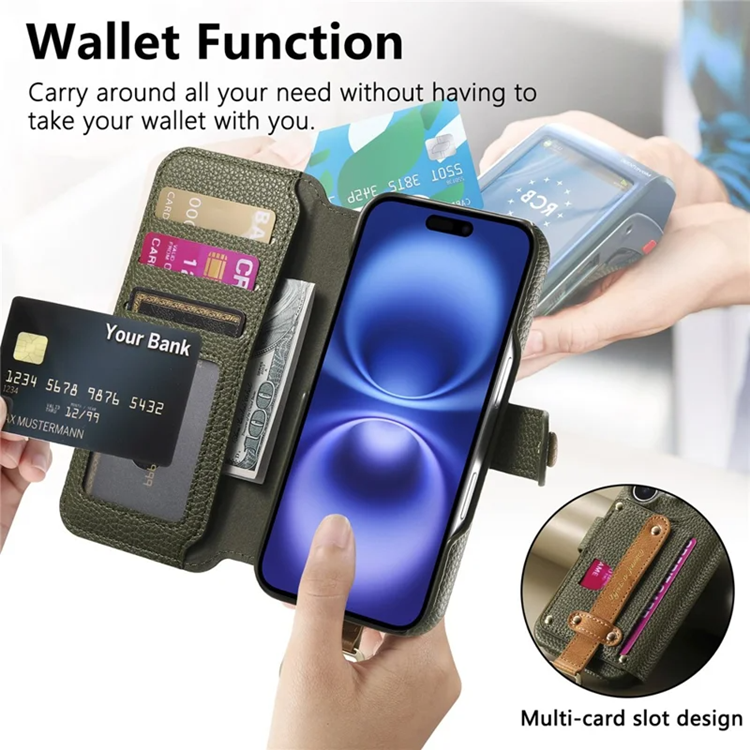 iPhone 17 Pro Max Plånboksfodral RFID-blockering Zipper - Grön