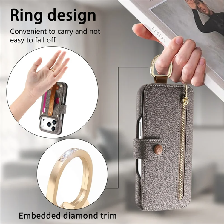 iPhone 17 Pro Max Plånboksfodral RFID-blockering Zipper - Grå