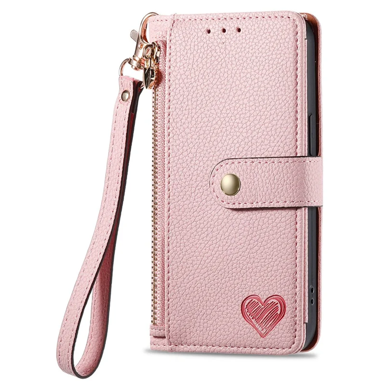 Låt din mobil glänsa med en touch av elegans och funktion. Detta exklusiva Plånboksfodral i högkvalitativt PU-läder kombinerar lyxig design med praktisk användning. Den mjuka ytan känns behaglig i handen, medan de små präglade hjärtana och den hjärtformade dragkedjan ger ett charmigt och feminint uttryck. Perfekt för dig som vill skydda din mobil – utan att kompromissa med stil.
