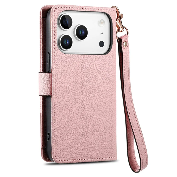 Handla denna produkt iPhone 17 Pro Max Plånboksfodral RFID Zipper med rem - Rosa