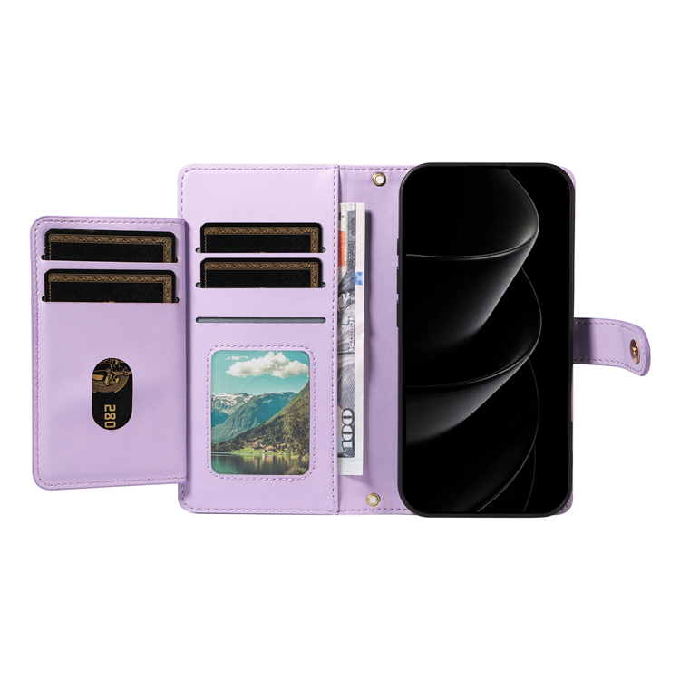 iPhone 17 Pro Max Plånboksfodral med rem Rhombus Läder - Lila
