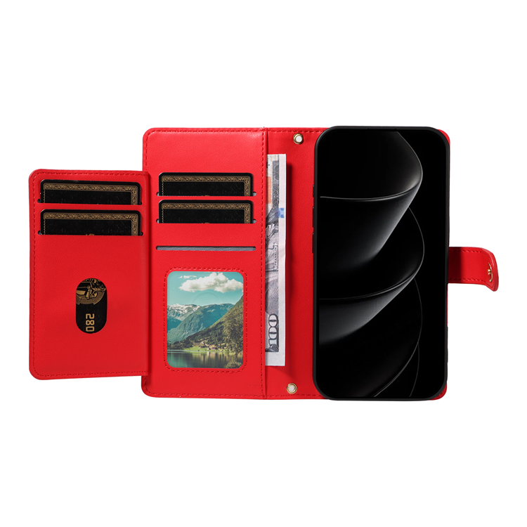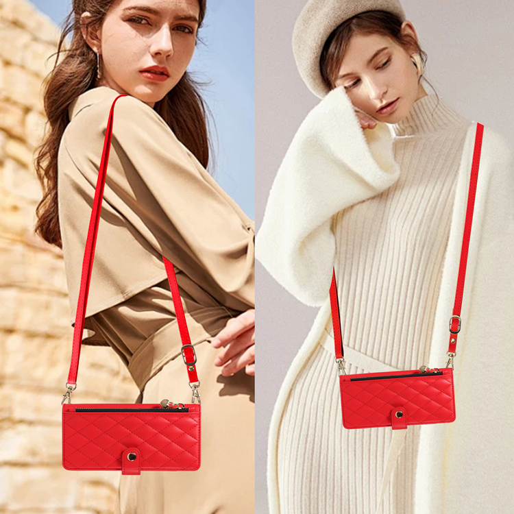 iPhone 17 Pro Max Plånboksfodral med rem Rhombus Läder - Röd