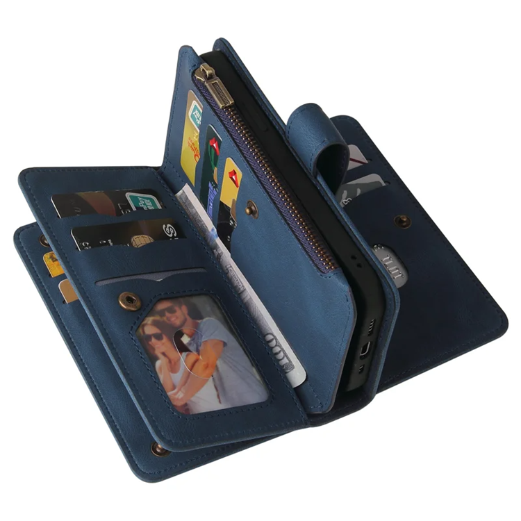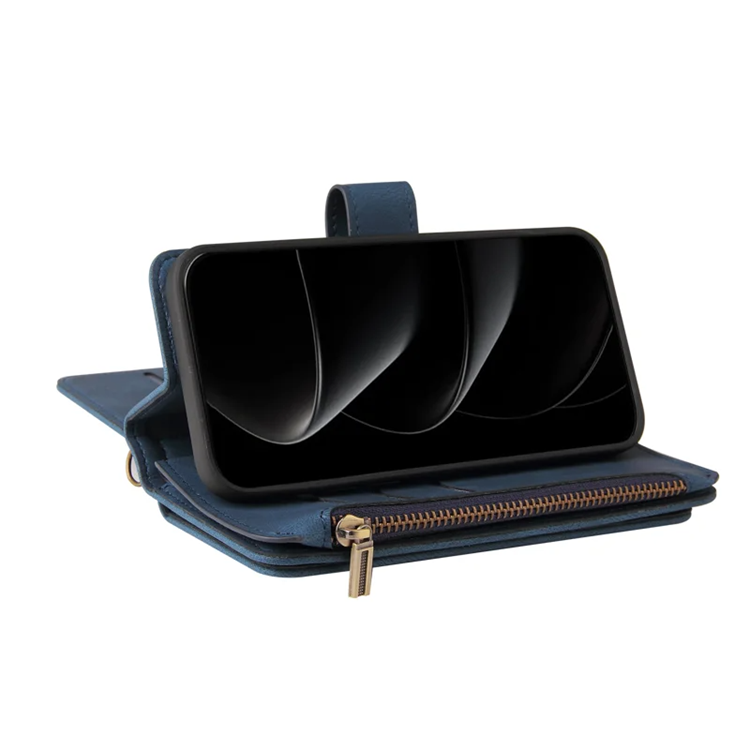 iPhone 17 Pro Max Plånboksfodral Zipper Rem - Blå