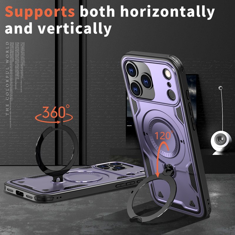 Detta telefonfodral erbjuder militärklassad skydd och är tillverkat av en hållbar kombination av PC och TPU-material. Med en 360-graders roterande kickstand och kompatibilitet med MagSafe-laddare, får du både funktionalitet och säkerhet. Håll din enhet säker och njut av en bekväm visningsupplevelse i alla lägen.