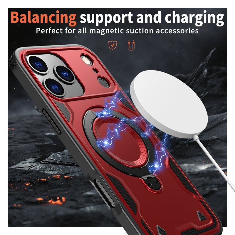 Detta telefonfodral erbjuder militärklass skydd och är tillverkat av en hållbar kombination av PC och TPU-material. Med en 360-graders roterande kickstand och full kompatibilitet med MagSafe-laddare, är detta fodral både funktionellt och praktiskt. Håll din enhet säker och njut av en smidig användarupplevelse.