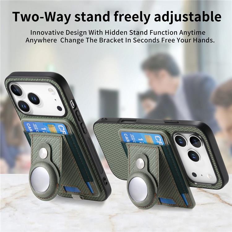 iPhone 17 Pro Mobilskal AirTag Detachable korthållare Läder + TPU + PC - Grön